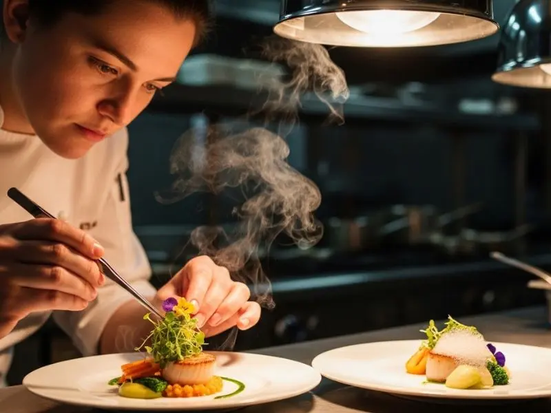 Preste atenção às texturas e temperaturas — em alta gastronomia, cada elemento é intencional
