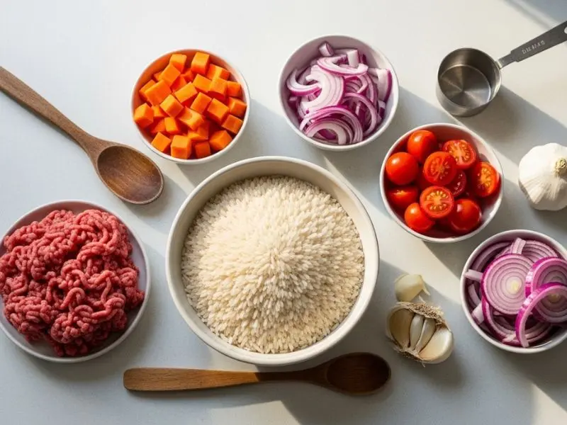 O arroz com carne moída é um clássico nesse estilo, pois permite inúmeras combinações de legumes, temperos e proteínas, adaptando-se facilmente ao que se tem disponível em casa.