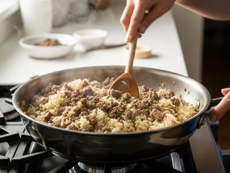- Arroz de Panela Única com Carne Moída: Praticidade e Sabor para o Almoço