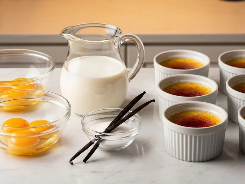 A crème brûlée receita original usa ingredientes mínimos — e cada um precisa ser de qualidade real.