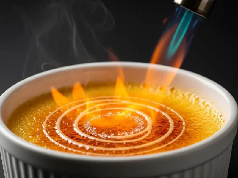 Além disso, o maçarico permite recaramelizar se a primeira tentativa não ficou uniforme — basta adicionar um pouco mais de açúcar e repetir. Contudo, com o gratinador, a janela de tempo é muito curta para correção.