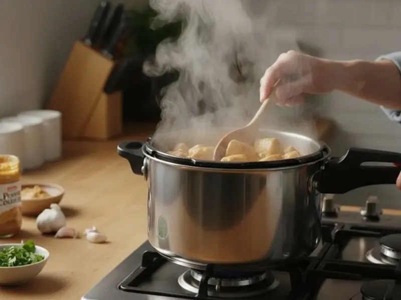 Além disso, o método de cozimento sob pressão permite que o molho fique naturalmente mais encorpado, resultando em uma textura cremosa sem a necessidade de grandes quantidades de gordura.