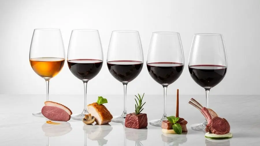 O princípio mais fundamental da harmonização vinho tinto: a intensidade do vinho deve corresponder à intensidade do prato. Além disso, o vinho não deve dominar o prato — nem o prato dominar o vinho.