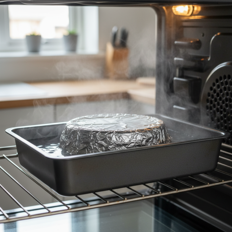 • Banho-maria estável: A água deve estar quente ao entrar no forno e não deve secar durante o cozimento. Complete com mais água quente, se necessário.