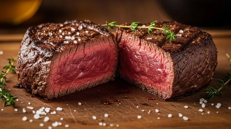 “Crosta escura por fora, rosado por dentro. Esse contraste só existe quando a reação de Maillard acontece corretamente — e quando o interior não foi sacrificado pela crosta. 🥩” –>