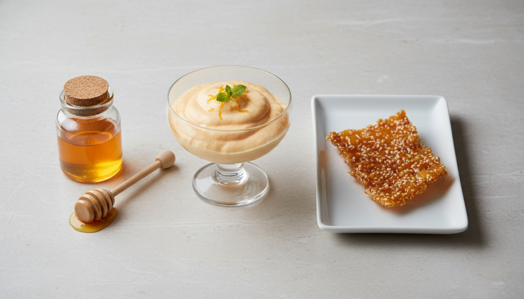A Mousse de Tangerina com Crocante de Gergelim e Calda de Mel de Laranjeira é mais do que uma simples sobremesa; é uma celebração de sabores e texturas que se complementam harmoniosamente. Ao seguir este guia detalhado, você não apenas criará um prato delicioso, mas também aprimorará suas habilidades culinárias, compreendendo a importância de cada etapa e ingrediente. Esta receita demonstra que a inovação na cozinha pode ser alcançada com a valorização de ingredientes simples e a aplicação de técnicas precisas, resultando em uma experiência gastronômica sofisticada e memorável.