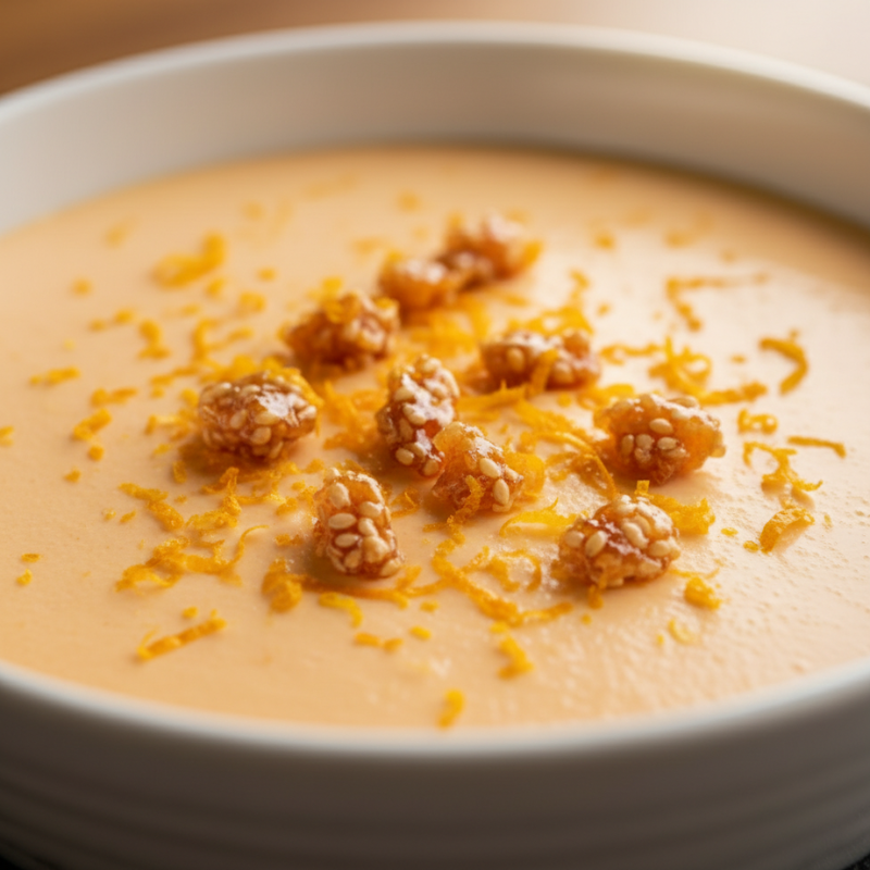 - Finalizar: Finalize com os pedaços de crocante de gergelim e as raspas frescas de tangerina. Sirva imediatamente.