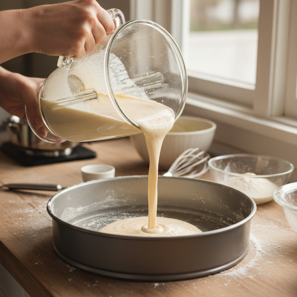 - Unte uma forma média (aproximadamente 30 × 20 cm) com óleo ou manteiga e polvilhe com farinha de trigo.